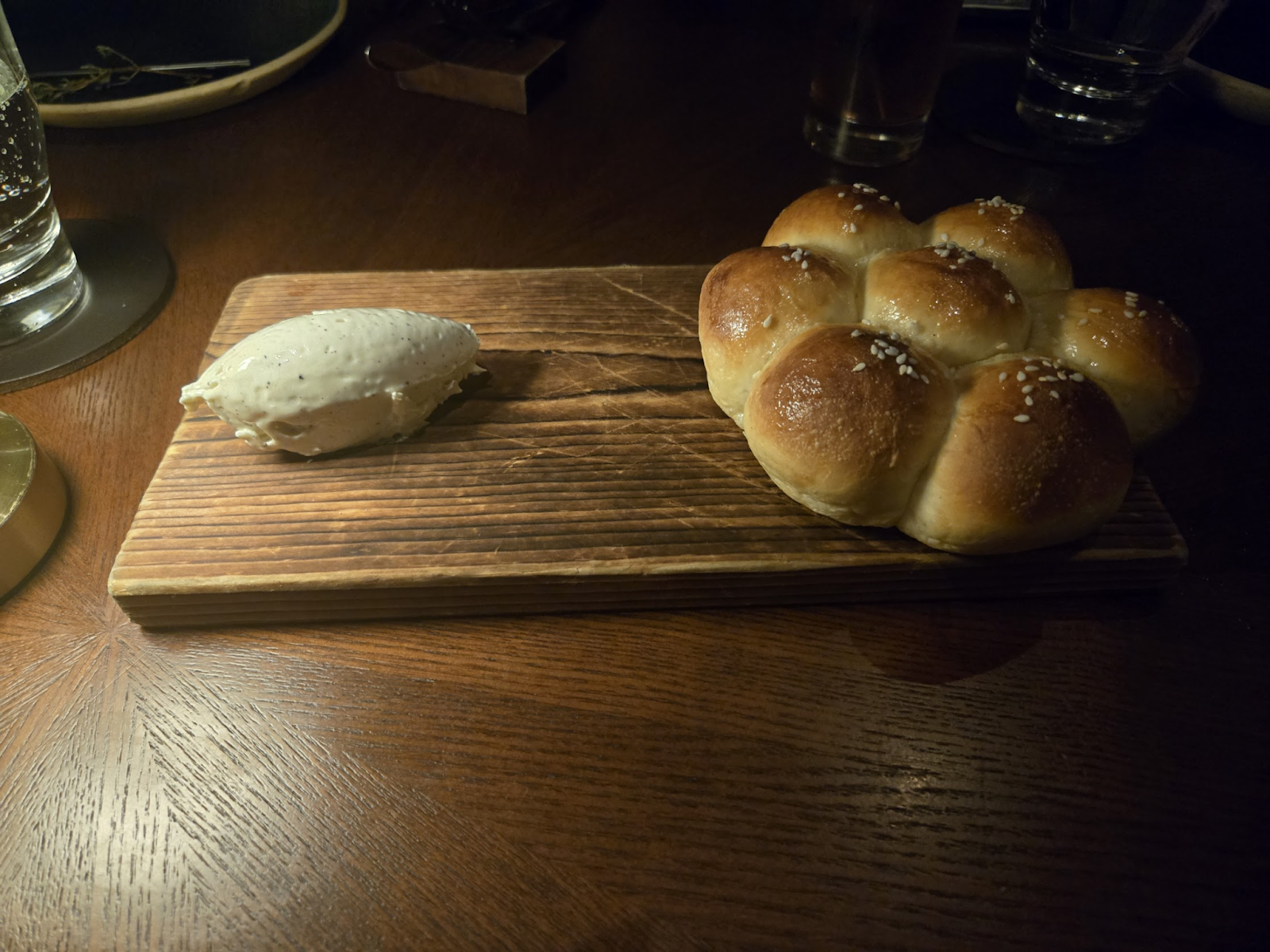 The Hokkaido Milk Buns are topped with sesame seeds and served with whipped honey butter on the side. These are essentially the perfect sweet and soft bun.
